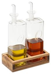 Vinegar Dispenser Wooden Base Σετ Λαδόξιδο Γυάλινο 220ml Navaris