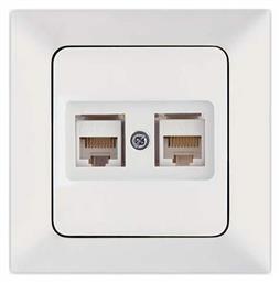 Διπλή Πρίζα Δικτύου RJ45 με Πλαίσιο Τύπου Cat6 σε Λευκό Χρώμα 152-16016 Eurolamp